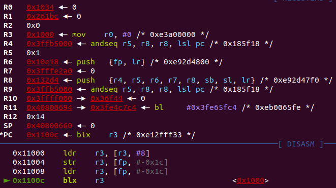 위의 사진처럼 r3로 점프를 하는데 이 값은 0x1000이었다.