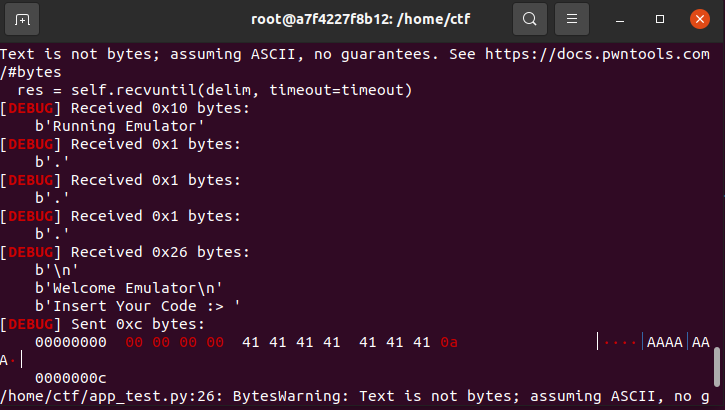 아래와 같은 익스코드를 짜서 실행흐름이 "AAAA"로 잘 넘어가는지 테스트해보았다.