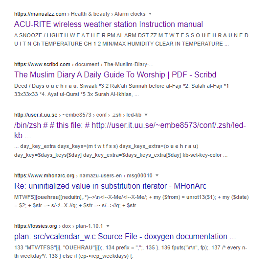 구글 검색결과를 보면 그럴수가없을거 같은데 MTWTFSS와 OUEHRAU가