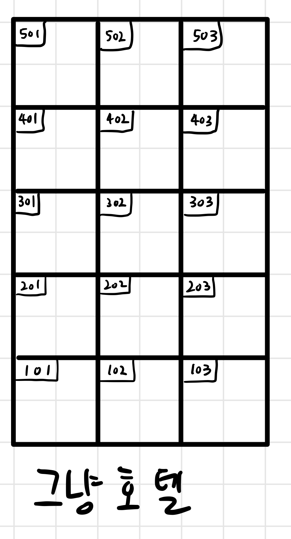 자, 이 호텔이 만약 101호부터 1003호까지 있는 10층짜리 호텔이면,