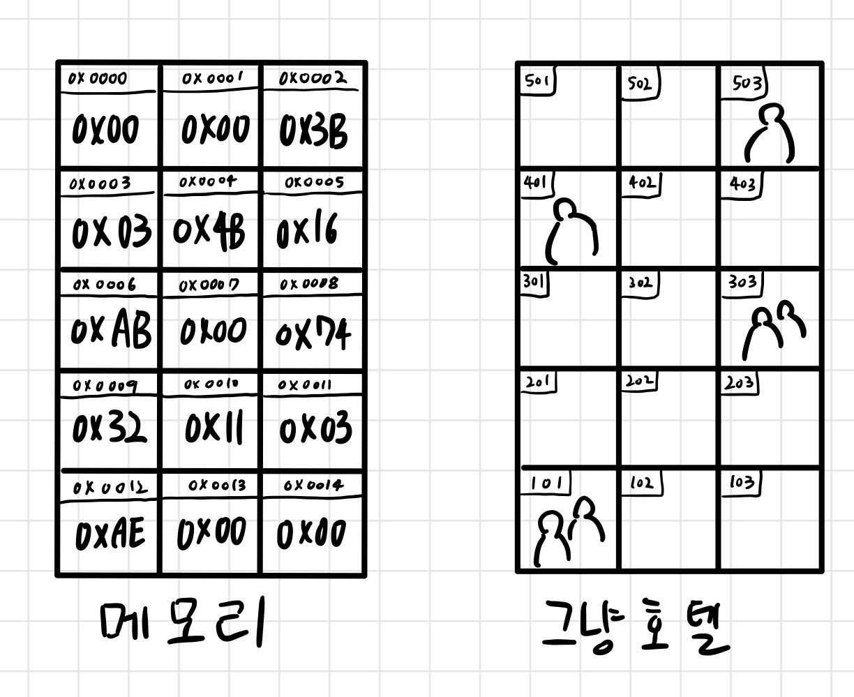 이처럼 호텔은 방번호(주소)는 숫자이고 안에 들어가는건 손님(값)이니, 헷갈릴게 없는데