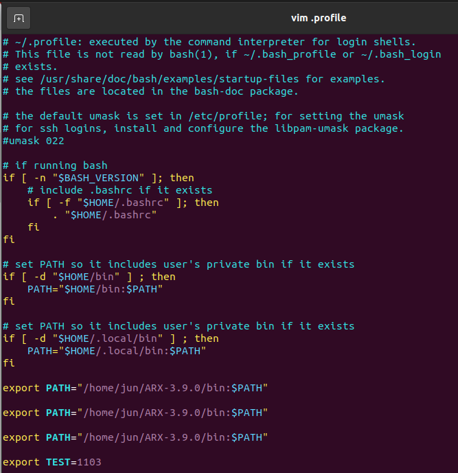 특정 유저의 홈 디렉터리 안의 .profile을 수정하면 해당 user만 해당 환경변수를 이용할 수 있다는 뜻이다.