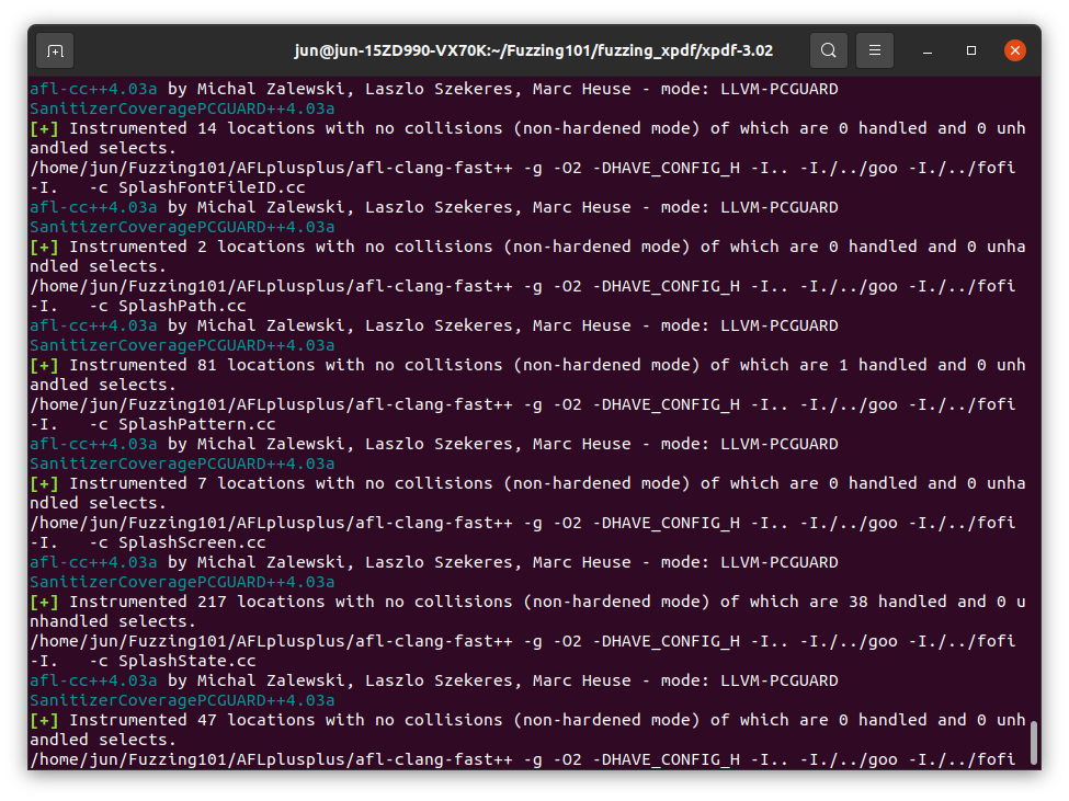 xpdf(타겟)을 다시금 컴파일 해주어야하는데, 우리는 afl-clang-fast를 사용할 것이다.
