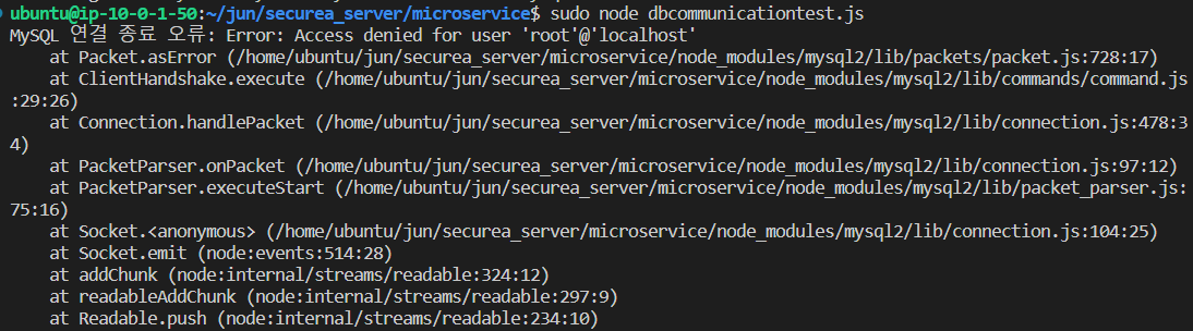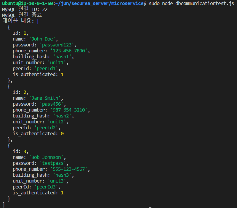 ubuntu@ip-10-0-1-50:~/jun/securea_server/microservice$ sudo node dbcommunicationtest.js