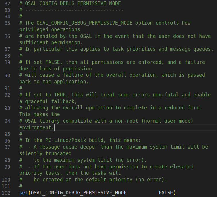 OSAL의 “permissive mode” 를 키면 메세지 큐 깊이와 우선순위에 좋다고 한다.
