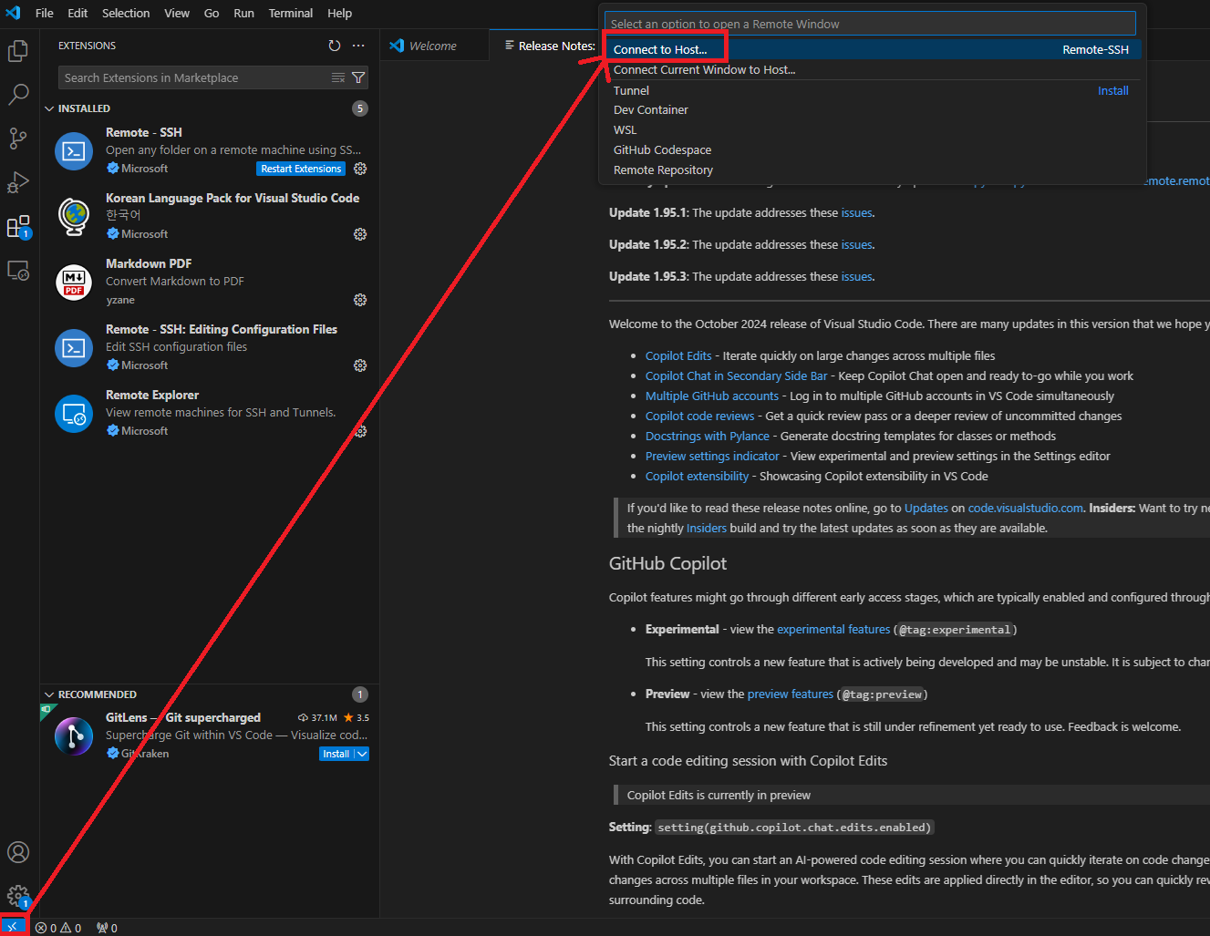 1. Remote - SSH extensions 설치