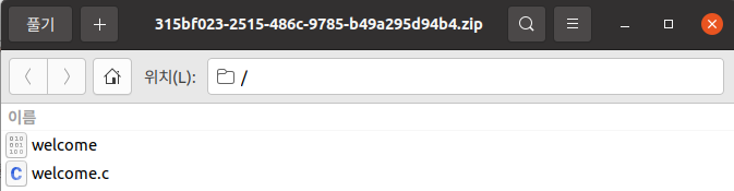 바로 문제 파일로 제공된 welcome.c 파일이 이러한 동작을 수행해주는 것이다!
