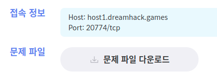 문제 페이지를 보면 접속 정보와 문제 파일을 확인할 수 있다.