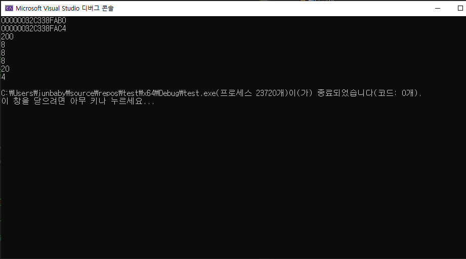 결국 둘다 크기는 8byte(64비트 컴퓨터, 포인터 변수의 크기)