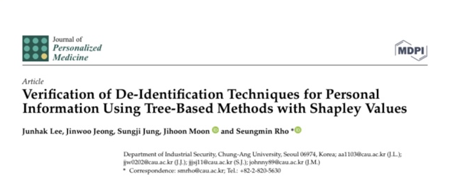 제목은 Verification of De-Identification Techniques for Personal Information Using Tree-Based Methods with Shapley Values 입니다.