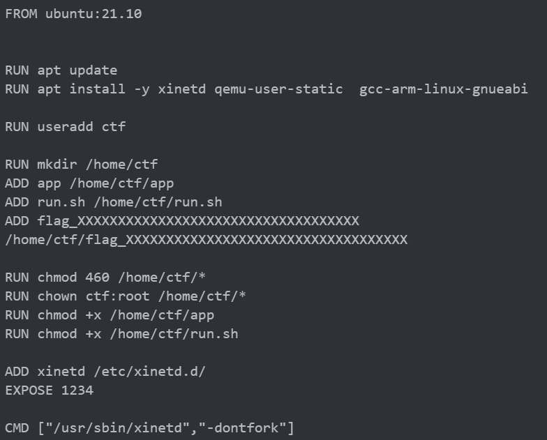 CTF문제에서 다음과 같이 Dockerfile을 제공해주는 경우가 있다.